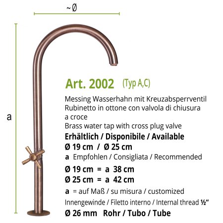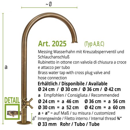Sie suchen Wasserhähne für den Garten oder einen Wasserhahn für Ihren Brunnen im Außen Bereich? Bei Gasser Naturstein in Südtirol - Italien finden Sie den perfekt passenden Wasserhahn für Außen und Innen. Wählen Sie aus verschiedensten Hähnen wie z.B. Entenhals oder rustikalen Wasserhähnen mit verschiedenen Anschlussmaßen. Einer unserer Klassiker ist der Wasserhahn mit offenen Wasserlauf, der an verschiedene Arten von Brunnen angepasst werden kann. Der Effekt ist derselbe, den ein Bach oder eine Bergquelle bietet: Entspannung und Wohlbefinden für Körper und Seele.