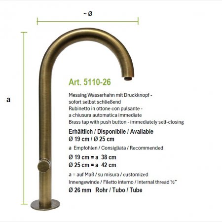 Are you looking for some nice taps for your garden or your fountains? Gasser Naturstein in South Tyrol - Italy will be happy to provide you with the right tap for all your needs. Choose between various offers, such as, the goose neck taps or taps with special decorations, equipped with different water attachments. One of our great classics is represented by taps with open water sources, which can be adapted to various types of fountains. The final effect is the same given by a stream or a mountain spring: relaxation and well being for body and soul.