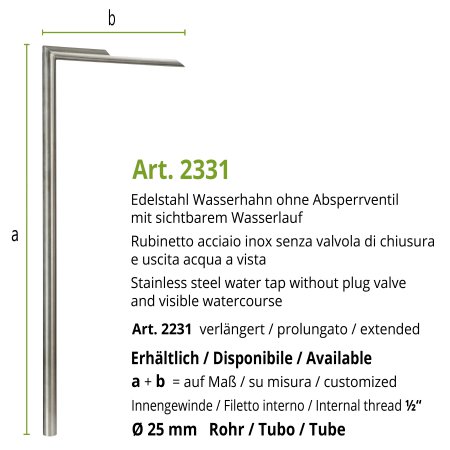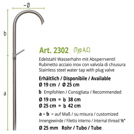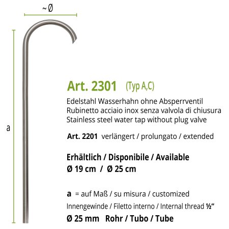 Are you looking for some nice taps for your garden or your fountains? Gasser Naturstein in South Tyrol - Italy will be happy to provide you with the right tap for all your needs. Choose between various offers, such as, the goose neck taps or taps with special decorations, equipped with different water attachments. One of our great classics is represented by taps with open water sources, which can be adapted to various types of fountains. The final effect is the same given by a stream or a mountain spring: relaxation and well being for body and soul.