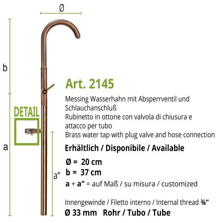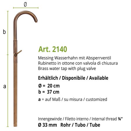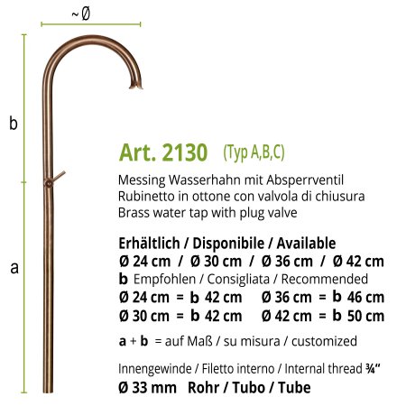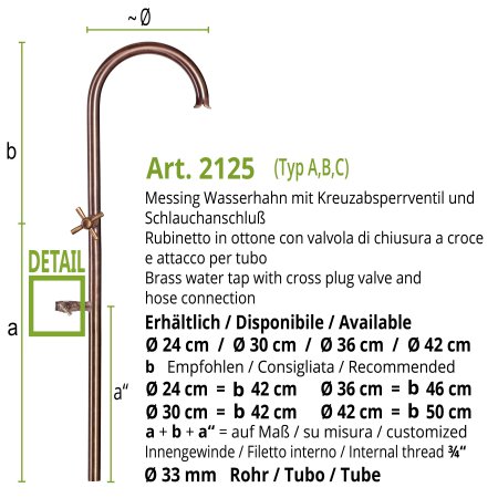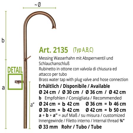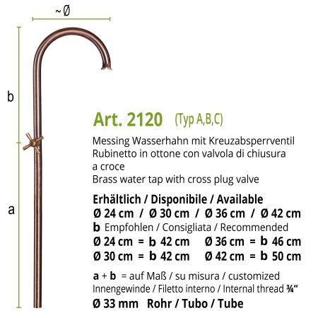 Are you looking for some nice taps for your garden or your fountains? Gasser Naturstein in South Tyrol - Italy will be happy to provide you with the right tap for all your needs. Choose between various offers, such as, the goose neck taps or taps with special decorations, equipped with different water attachments. One of our great classics is represented by taps with open water sources, which can be adapted to various types of fountains. The final effect is the same given by a stream or a mountain spring: relaxation and well being for body and soul.